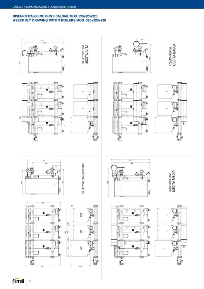 ASSEMBLY DRAWING WITH 3 BOILERS MOD. 320+220+220