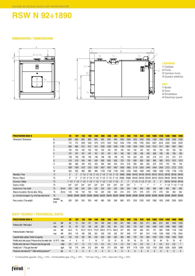 * Combustibile gasolio: CO2 = 13% - Combustibile gas: CO2 = 10% * Oil fuel: CO2 = 13% - Gas fuel: CO2 = 10%