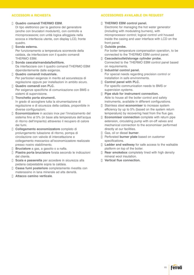 Da interfacciare con il quadro comandi THERMO EBM