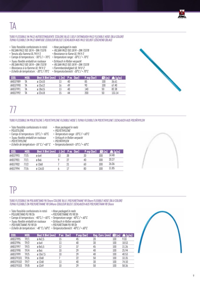 TUBO FLESSIBILE IN POLIETILENE | POLYETHYLENE FLEXIBLE HOSE | TUYAU FLEXIBLE EN POLYETHYLENE | SCHLAUCH AUS POLY