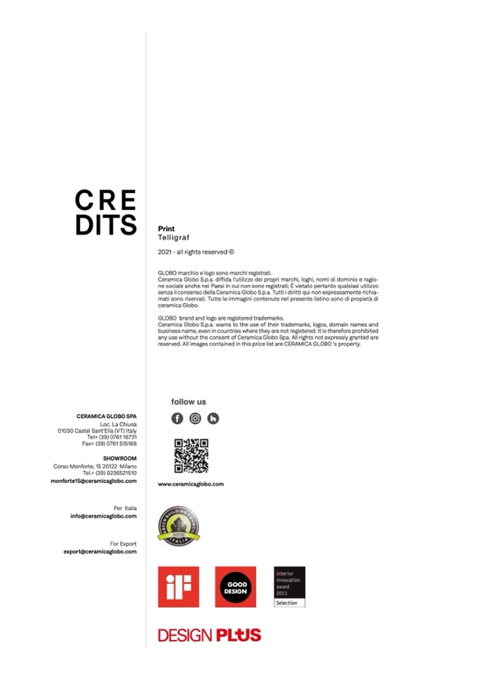 reserved. All images contained in this price list are CERAMICA GLOBO ‘s property.