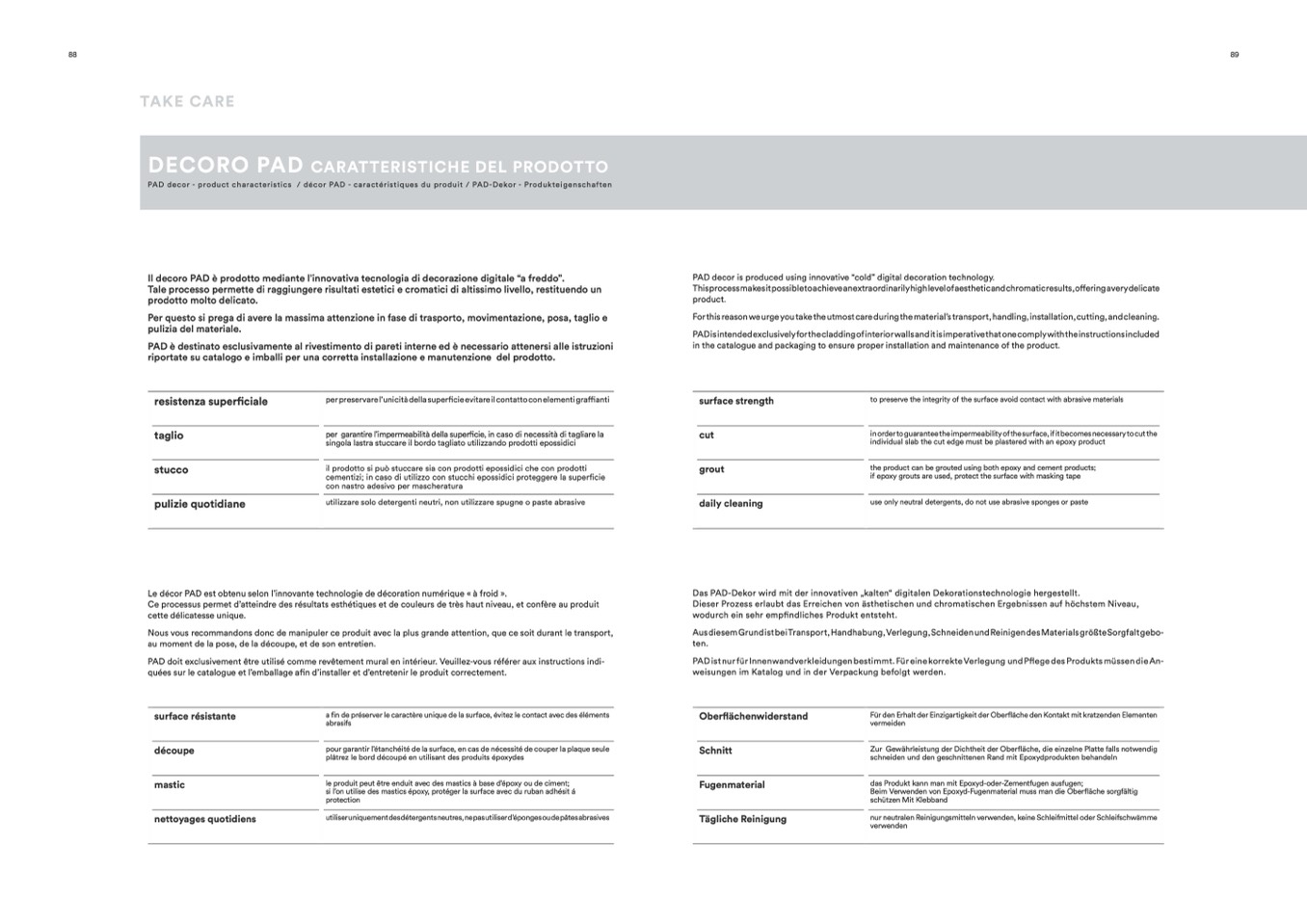PAD decor - product characteristics / décor PAD - caractéristiques du produit / PAD-Dekor - Produkteigenschaften