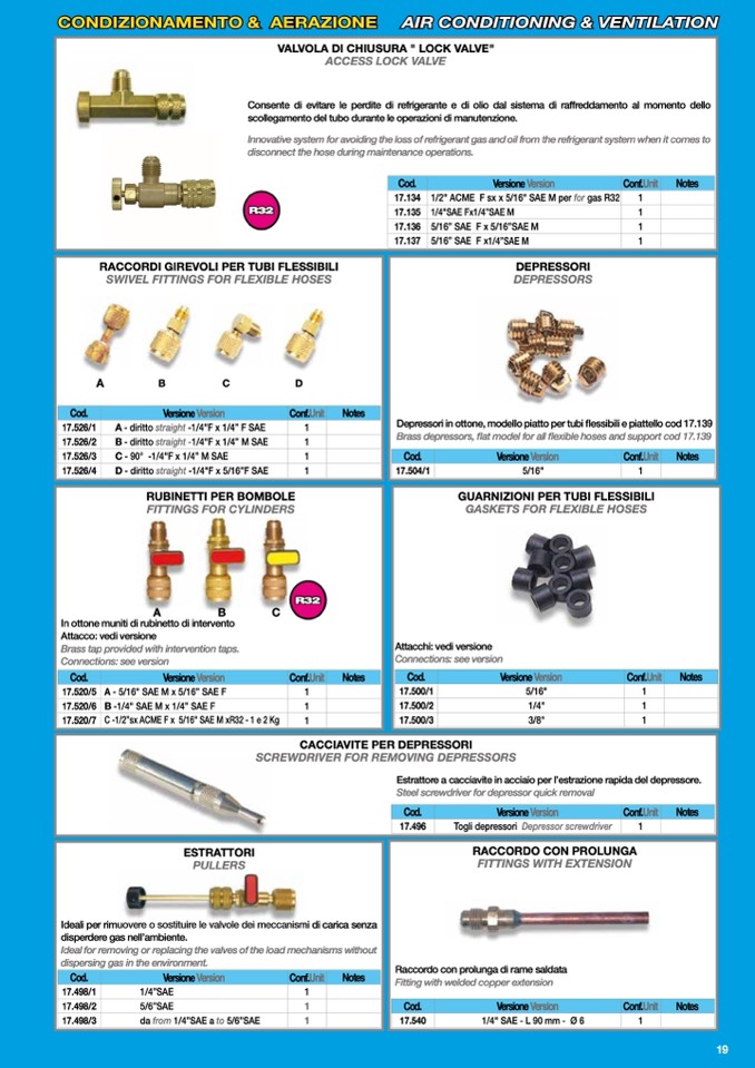 Brass depressors, flat model for all flexible hoses and support cod 17.139