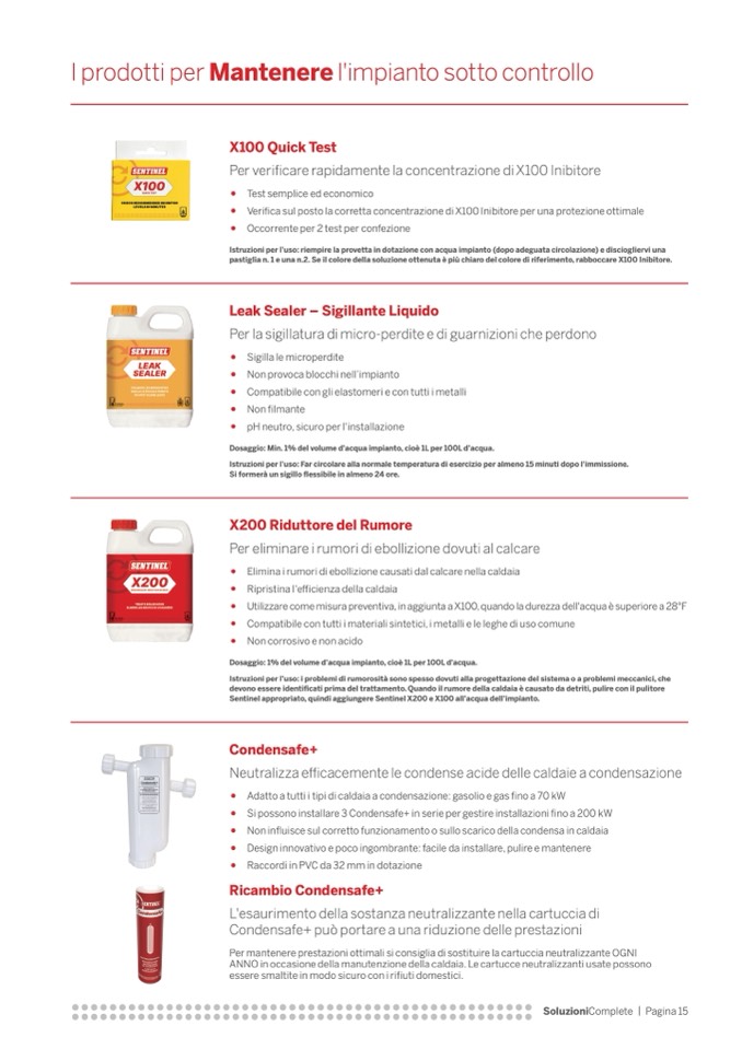 Dosaggio: Min. 1% del volume d'acqua impianto, cioè 1L per 100L d'acqua.