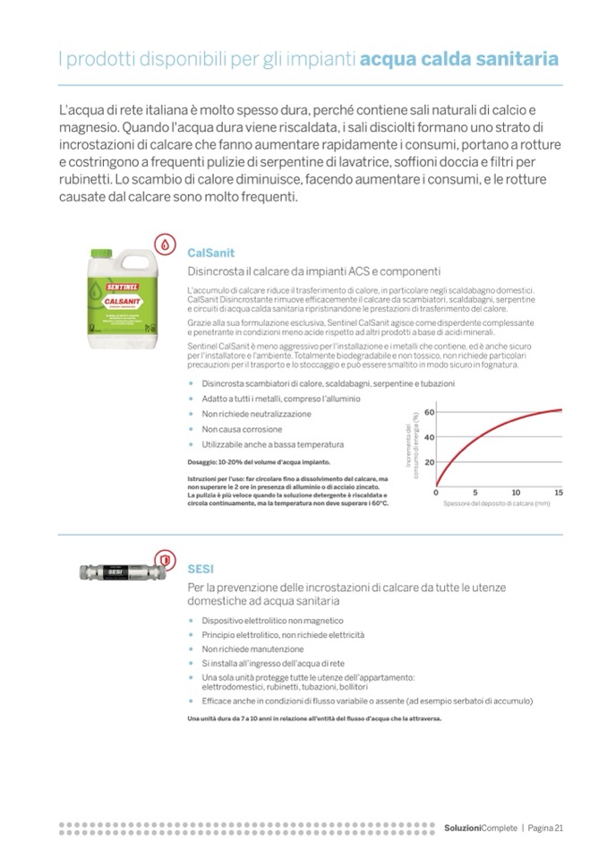 e circuiti di acqua calda sanitaria ripristinandone le prestazioni di trasferimento del calore.