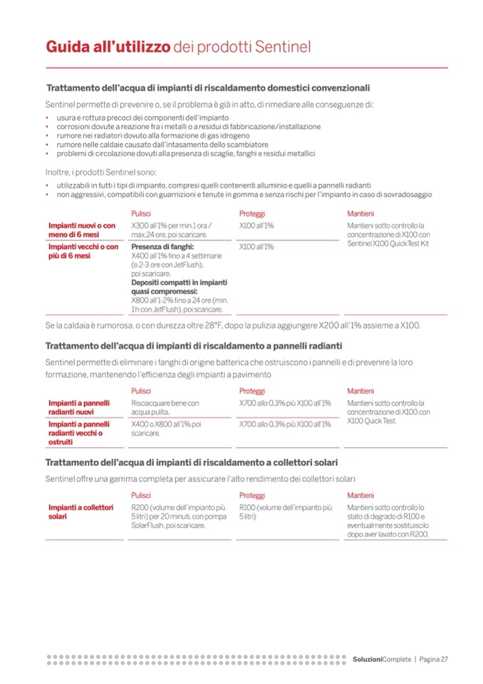 Se la caldaia è rumorosa, o con durezza oltre 28°F, dopo la pulizia aggiungere X200 all’1% assieme a X100.
