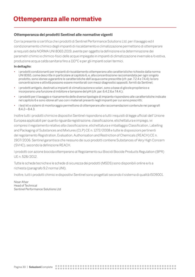 • i prodotti condizionanti per impianti di riscaldamento ottemperano alle caratteristiche richieste dalla norma