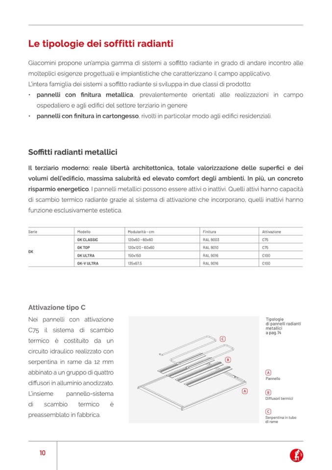 ffitto radiante si sviluppa in due classi di prodotto: