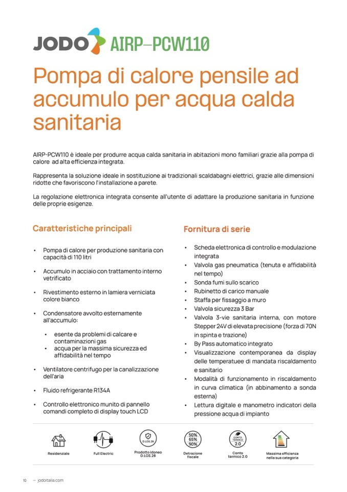 AIRP-PCW110 è ideale per produrre acqua calda sanitaria in abitazioni mono familiari grazie alla pompa di