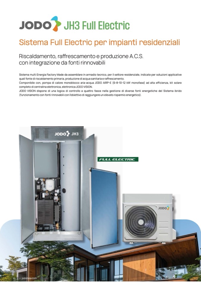 Componibile con, pompa di calore monoblocco aria-acqua JODO AIRP-E (6-8-10-12 kW monofase) ad alta efficienza, kit solare