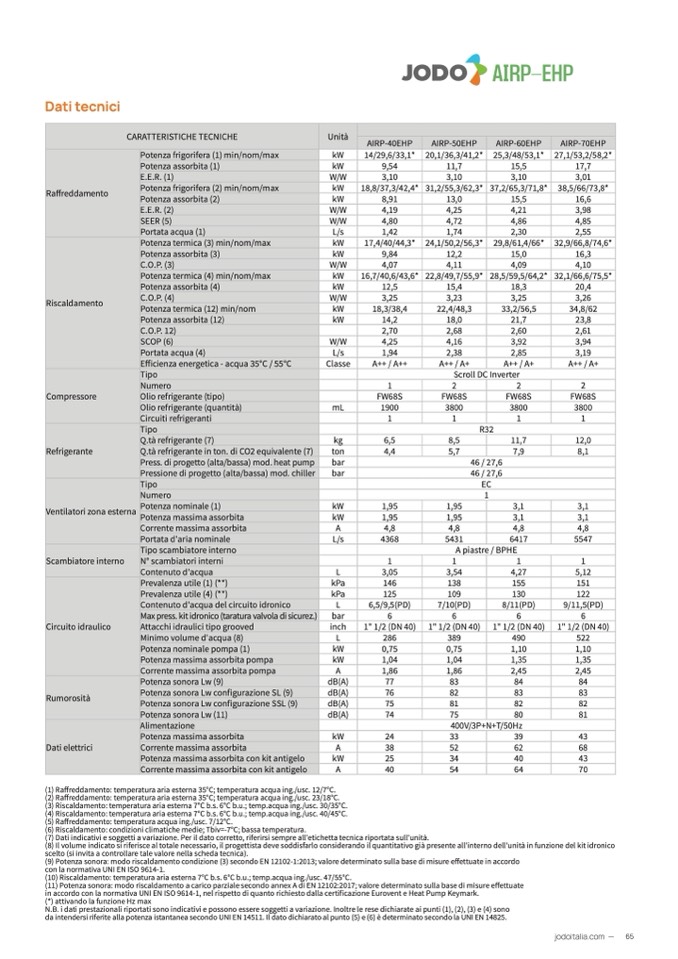 (4) Riscaldamento: temperatura aria esterna 7°C b.s. 6°C b.u.; temp.acqua ing./usc. 40/45°C.
