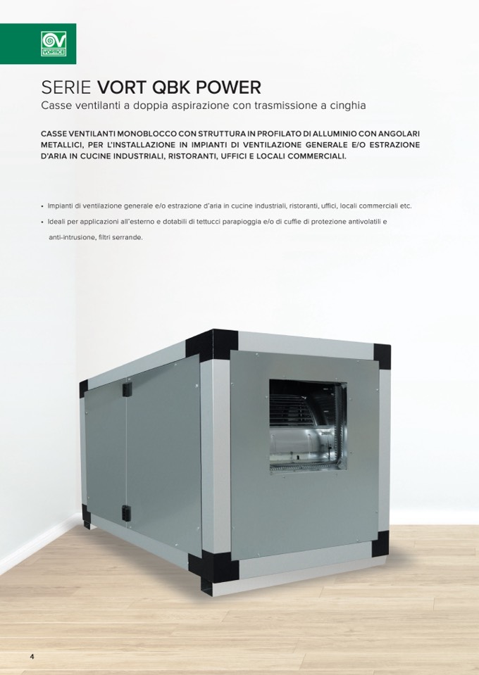 • Impianti di ventilazione generale e/o estrazione d’aria in cucine industriali, ristoranti, uffici, locali commerciali etc.