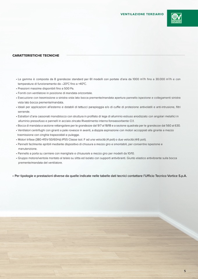 • La gamma è composta da 8 grandezze standard per 61 modelli con portate d’aria da 1000 m