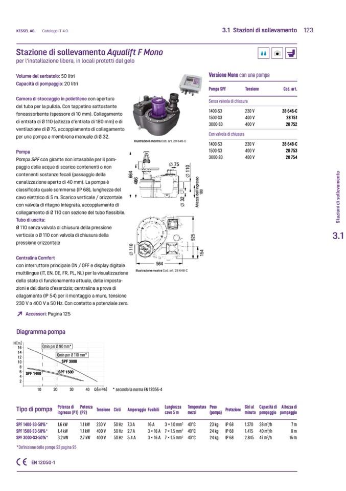 canalizzazione aperto di 40 mm). La pompa