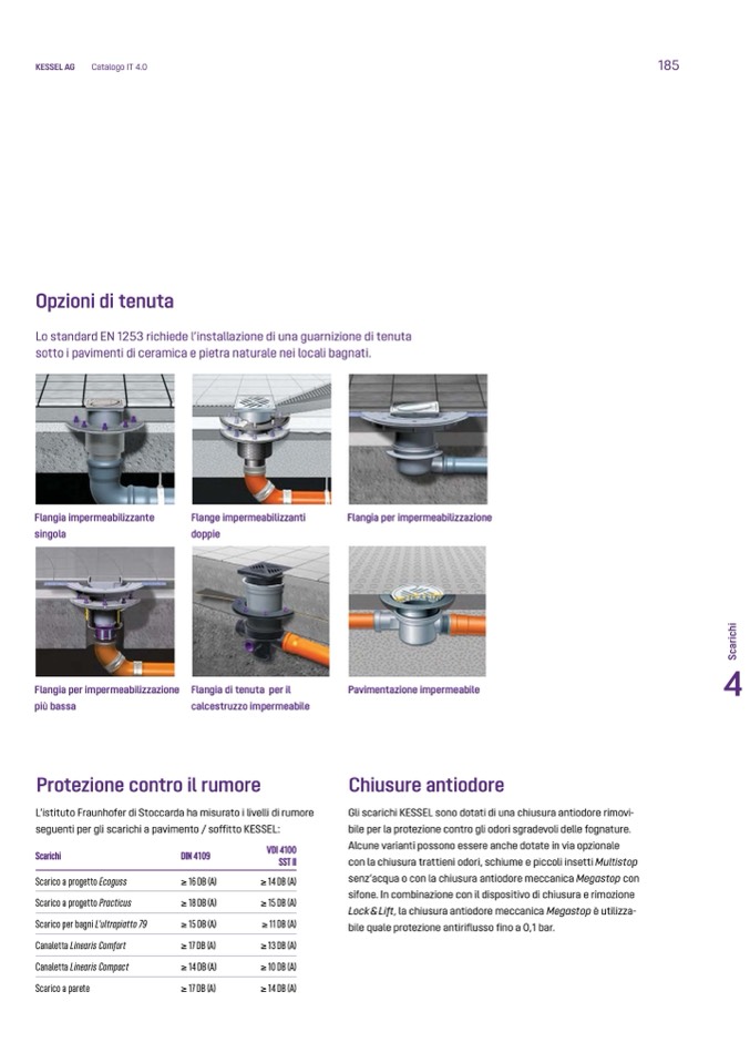 seguenti per gli scarichi a pavimento / soffitto KESSEL: