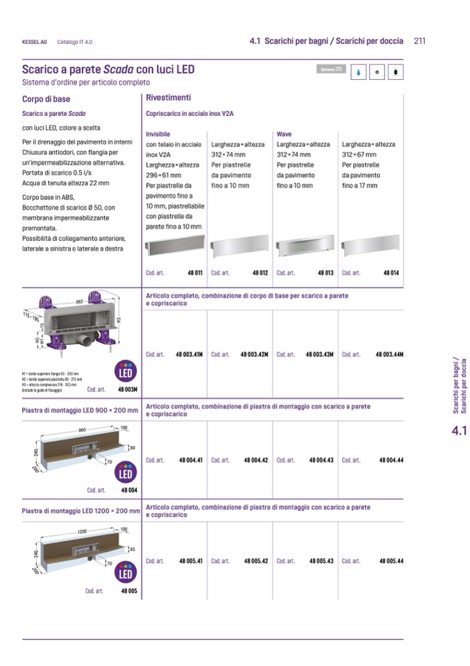Articolo completo, combinazione di piastra di montaggio con scarico a parete