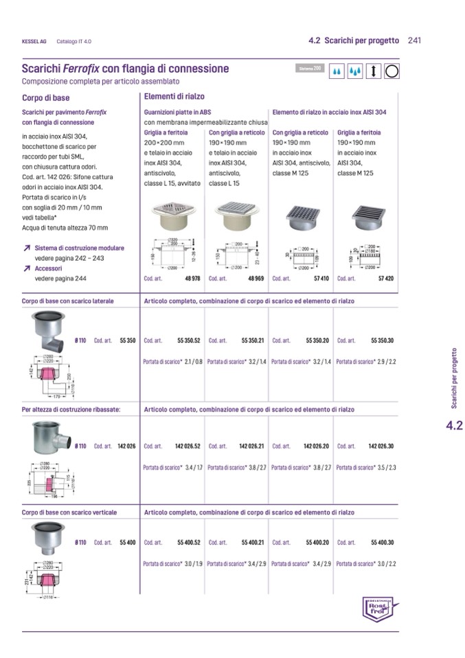 Articolo completo, combinazione di corpo di scarico ed elemento di rialzo