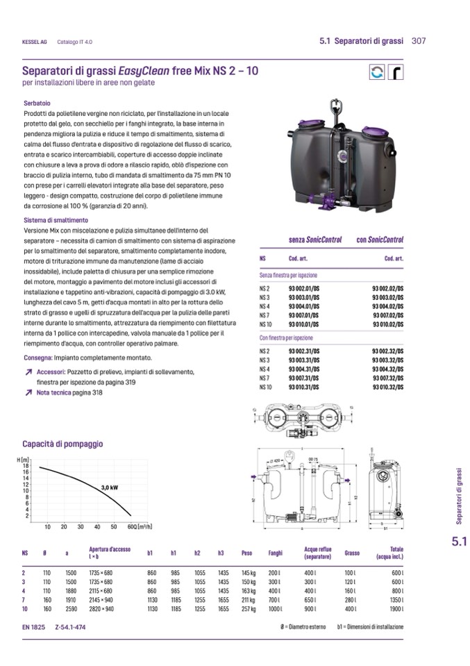 separatore – necessita di camion di smaltimento con sistema di aspirazione