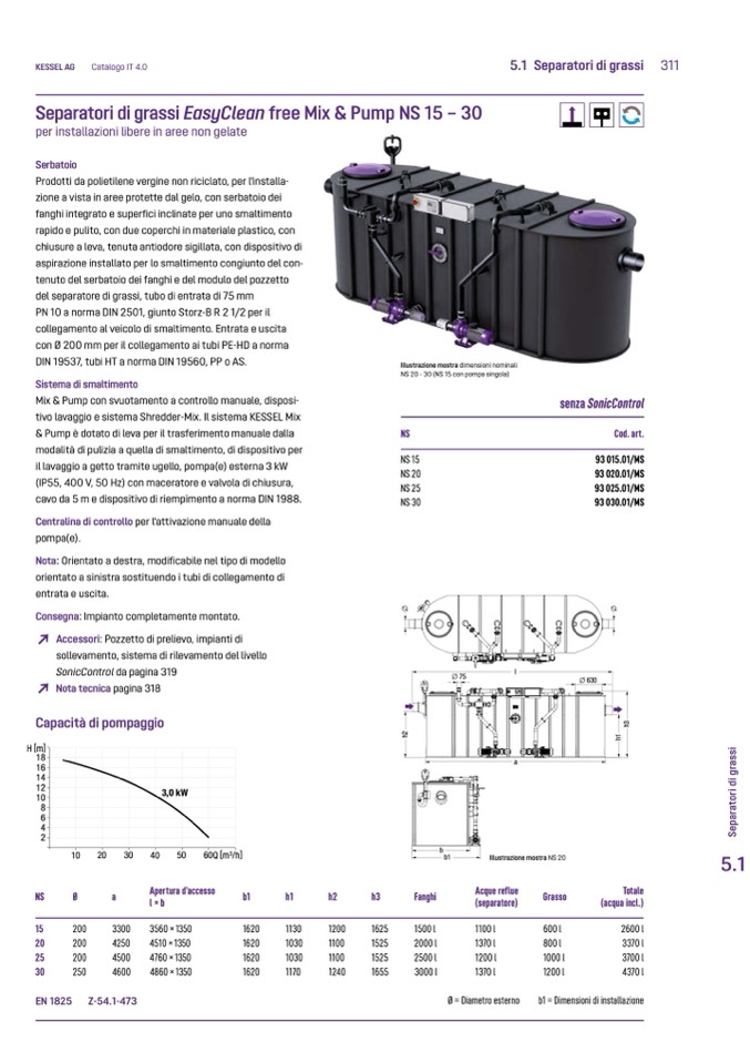 NS 20 - 30 (NS 15 con pompa singola)