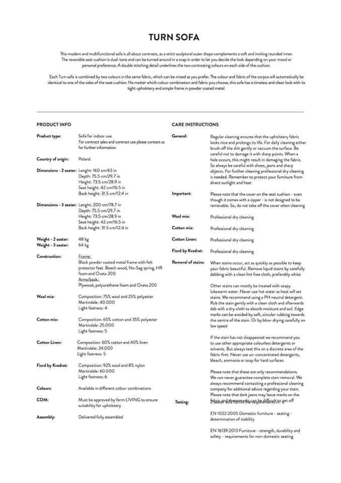 identical to one of the sides of the seat cushion. No matter which colour combination and fabric you choose, this sofa has a timeless and clean look with its