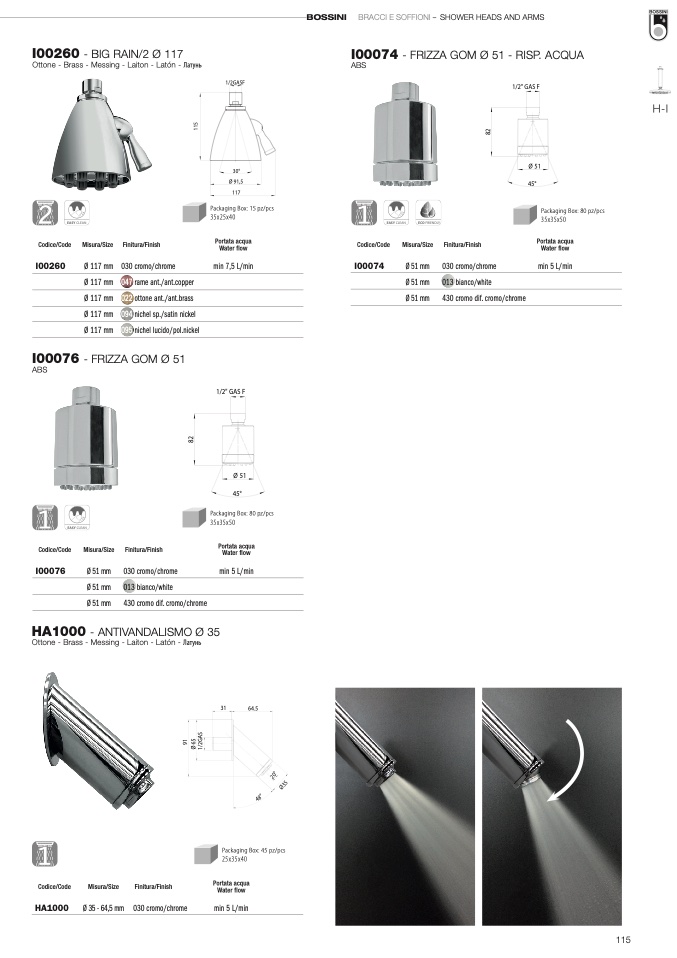 BRACCI E SOFFIONI – SHOWER HEADS AND ARMS