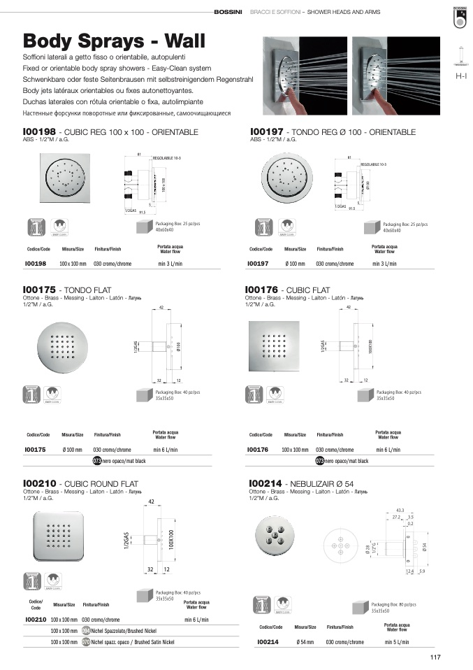 BOSSINI BRACCI E SOFFIONI – SHOWER HEADS AND ARMS
