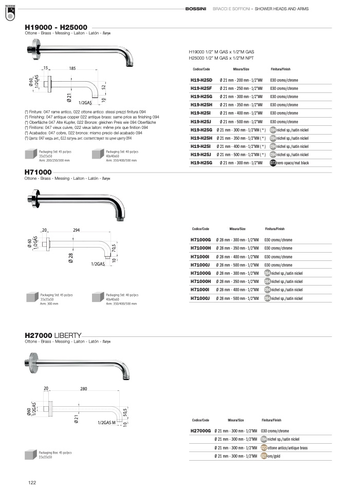 (*) Finiture: 047 rame antico, 022 ottone antico: stessi prezzi finitura 094