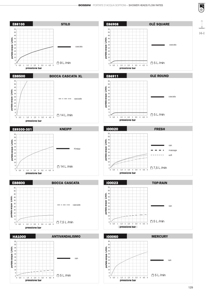 BOSSINI PORTATE D’ACQUA SOFFIONI – SHOWER HEADS FLOW RATES