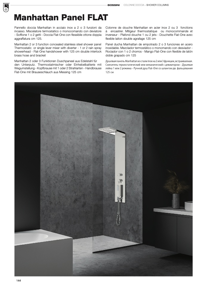Pannello doccia Manhattan in acciaio inox a 2 o 3 funzioni da