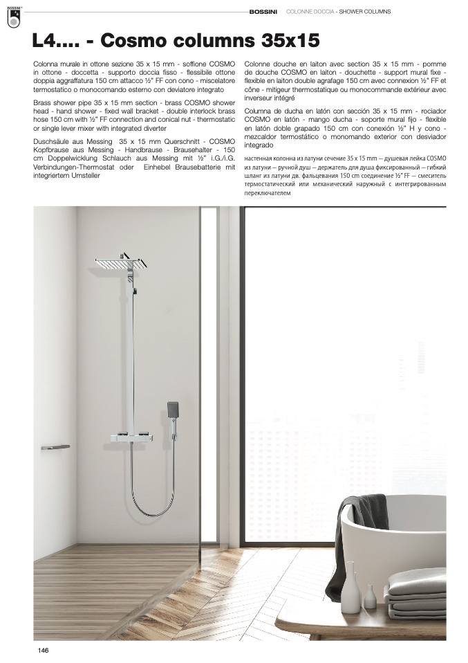 Colonna murale in ottone sezione 35 x 15 mm - soffione COSMO