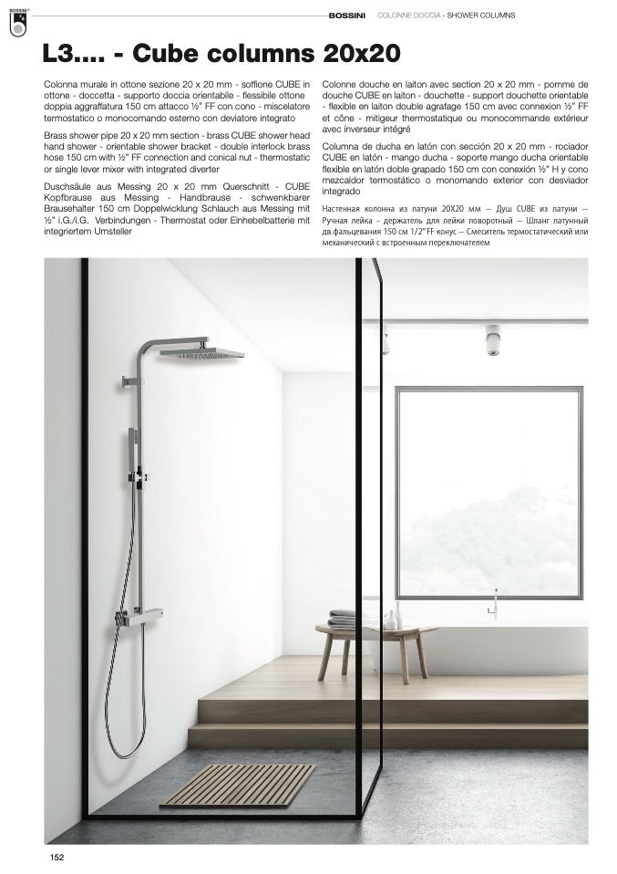 Colonna murale in ottone sezione 20 x 20 mm - soffione CUBE in
