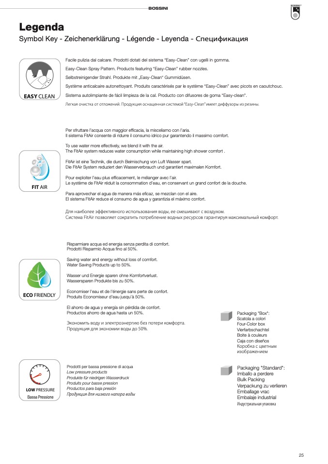 Facile pulizia dal calcare. Prodotti dotati del sistema “Easy-Clean” con ugelli in gomma.