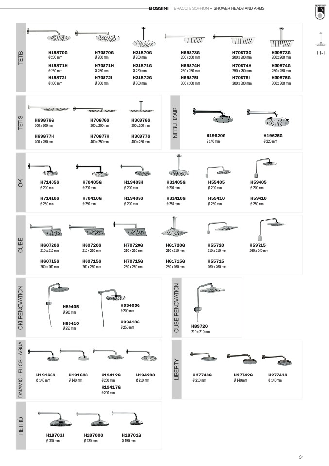 BOSSINI BRACCI E SOFFIONI – SHOWER HEADS AND ARMS
