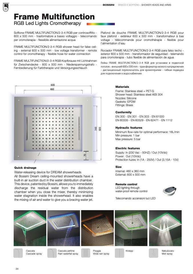 FRAME MULTIFUNCTION/2-3-4 RGB shower head for false ceil-