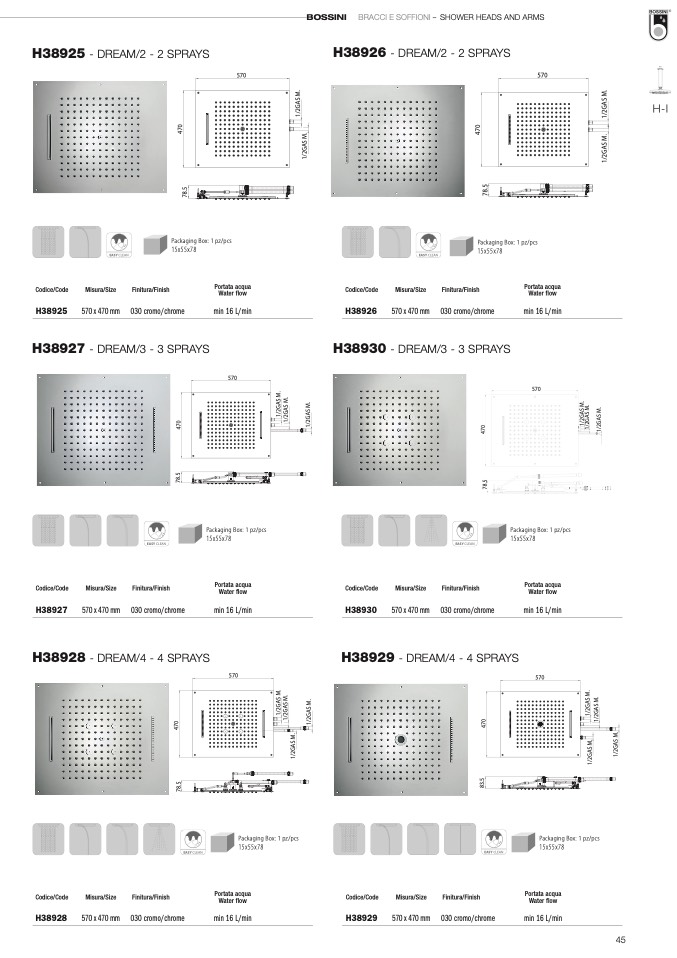 BOSSINI BRACCI E SOFFIONI – SHOWER HEADS AND ARMS