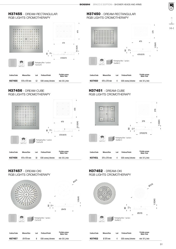 BOSSINI BRACCI E SOFFIONI – SHOWER HEADS AND ARMS
