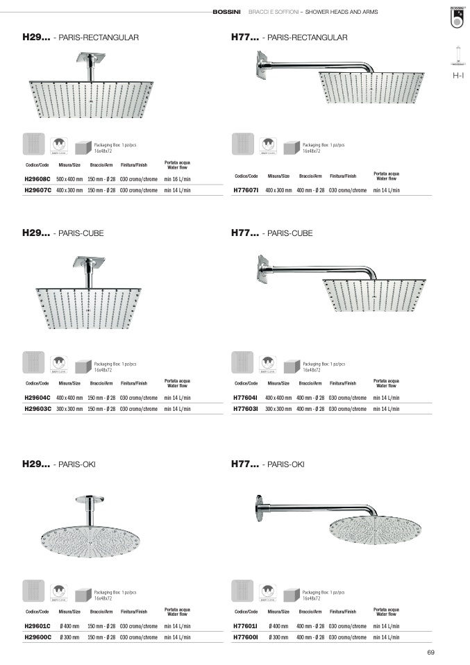 BOSSINI BRACCI E SOFFIONI – SHOWER HEADS AND ARMS