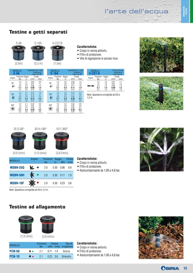 Note: Spaziatura consigliata da 0,6 a 1,2 m.