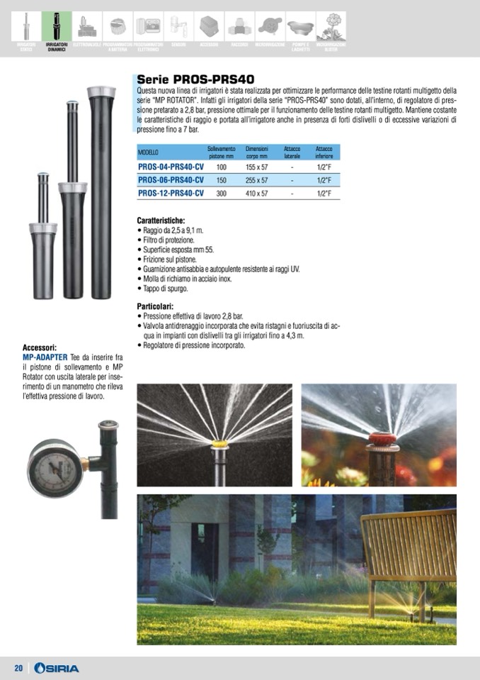 serie “MP ROTATOR”. Infatti gli irrigatori della serie “PROS-PRS40” sono dotati, all’interno, di regolatore di pres-