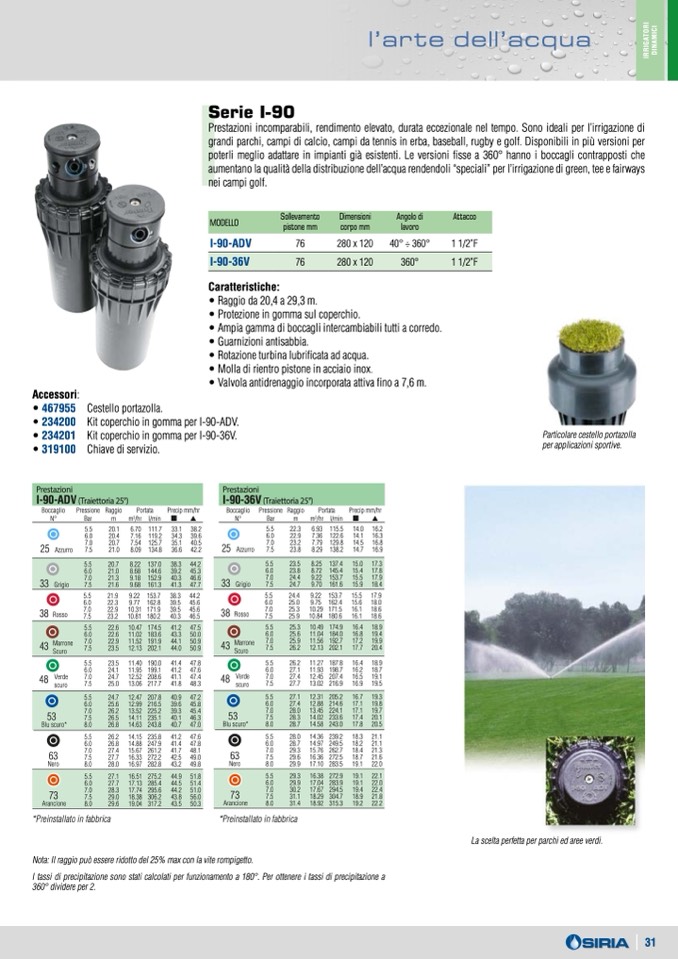 Nota: Il raggio può essere ridotto del 25% max con la vite rompigetto.