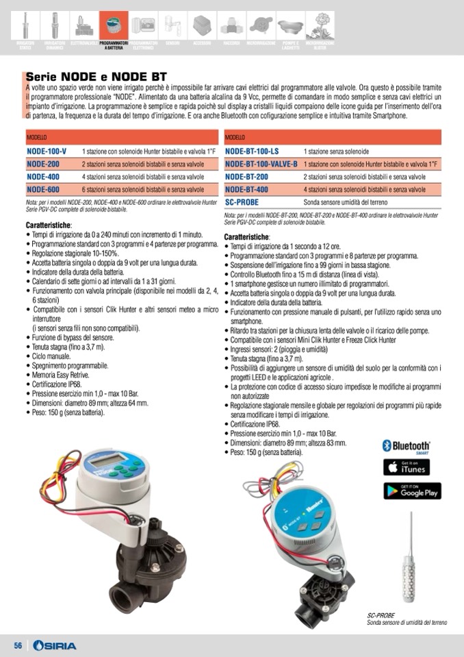 Nota: per i modelli NODE-BT-200, NODE-BT-200 e NODE-BT-400 ordinare le elettrovalvole Hunter