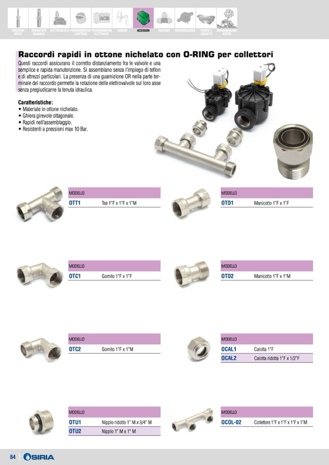 Raccordi rapidi in ottone nichelato con O-RING per collettori