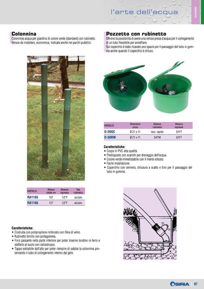 • Tappo estraibile dall’alto per poter riempire di sabbia la colonnina pre-