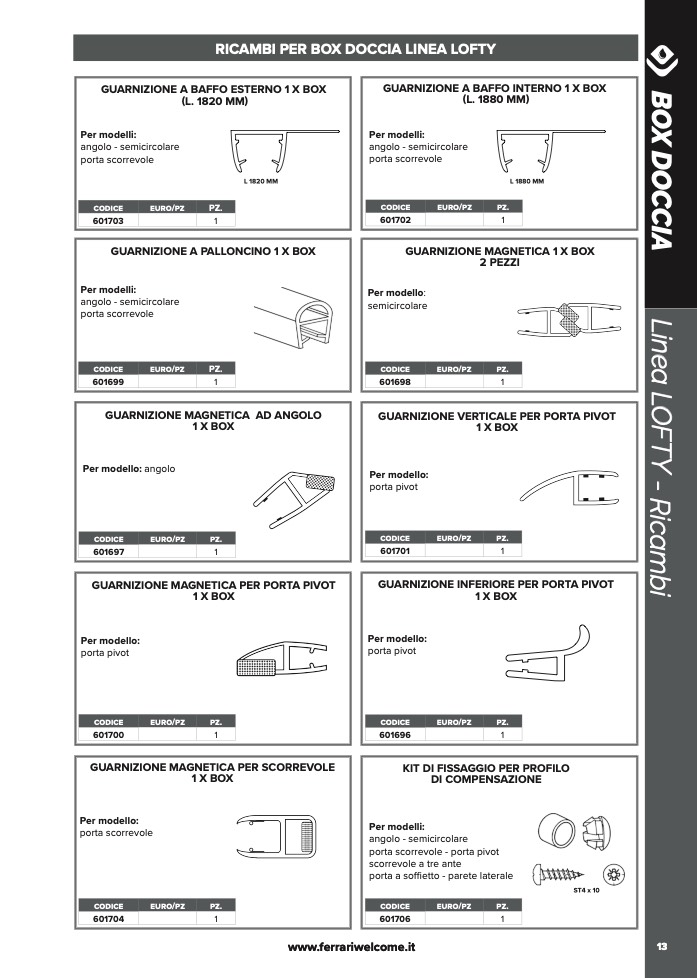 RICAMBI PER BOX DOCCIA LINEA LOFTY