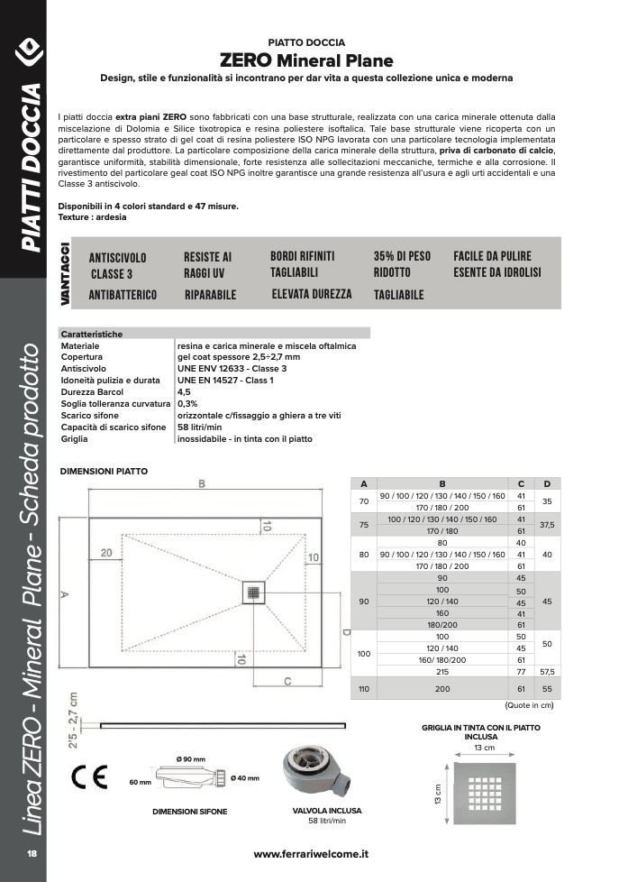 I piatti doccia extra piani ZERO sono fabbricati con una base strutturale, realizzata con una carica minerale ottenuta dalla