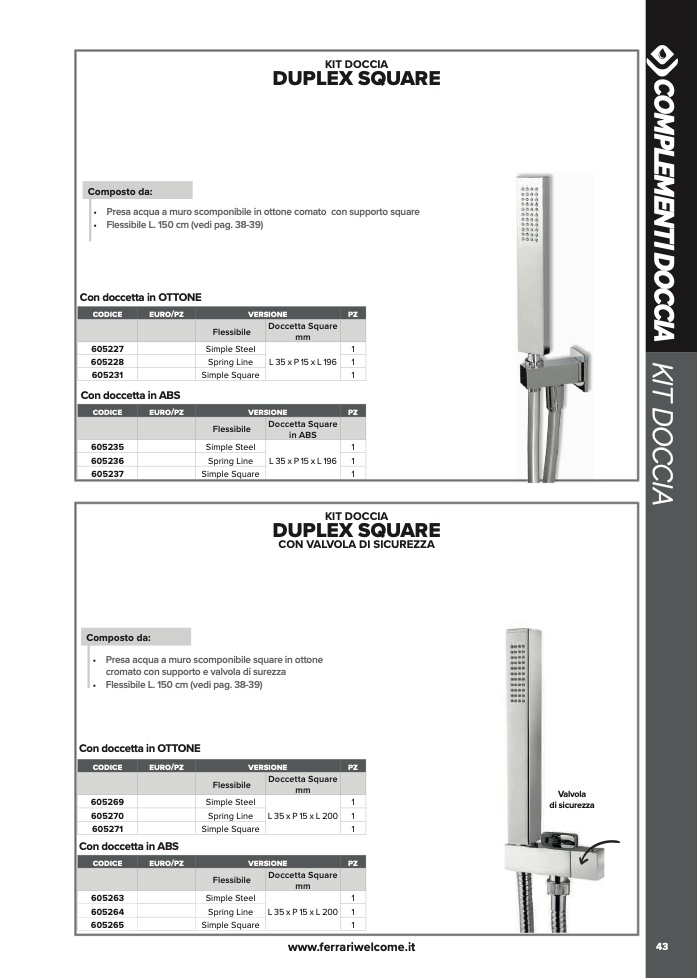 • Flessibile L. 150 cm (vedi pag. 38-39)