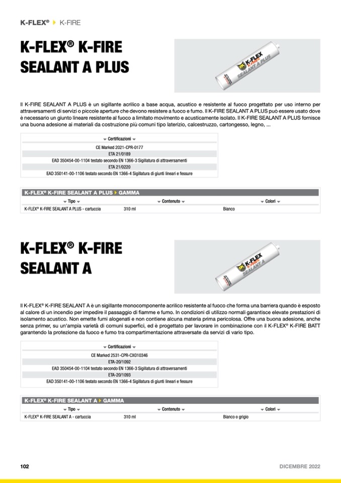 Il K-FIRE SEALANT A PLUS è un sigillante acrilico a base acqua, acustico e resistente al fuoco progettato per uso interno per