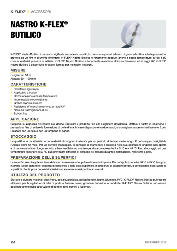 Nastro Butilico è fortemente resistente all’invecchiamento ed ai raggi UV. K-FLEX