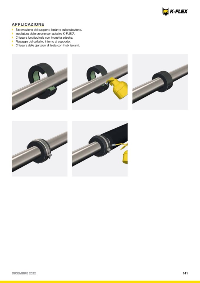 ` Sistemazione del supporto isolante sulla tubazione.