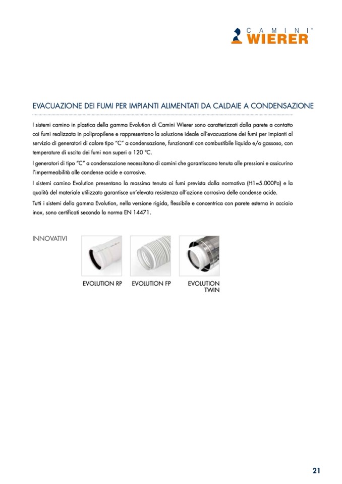 I sistemi camino in plastica della gamma Evolution di Camini Wierer sono caratterizzati dalla parete a contatto